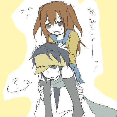 × [PR]上記の広告は3ヶ月以上新規記事投稿のないブログに表示されています。新しい記事を書く事で広告が消えます。 あいちゃん編その1 ネットが繋がりました! ++++++++ ・スカジャー 亜女斗「Σわああああ!!!」 愛希(Σビクッ) 亜女斗「ちょっとぉぉぉアイキさぁぁん…!!!」 愛希「な、何よいきなりビックリしたぁ…!!」 亜女斗「どうしちゃったんですかスカートの下にジャージなんか履いちゃってぇ!!いつもの愛らしいミニスカは!?こんなもの、こんなものこの市川が脱がせてあげますぅー!!」 愛希「Σうわあああジャージ下に引っ張るなあああ!!」 日和「Σえっちょっとアイちゃん何事なのどうしたの…!!」 愛希「ごめんアタシもよくわかんない!!」 日和「とりあえず落ち着こあめちゃん…!」 亜女斗「くっ……」(スッ) 愛希「か、解放された…」 日和「Σそして正座しだした!」 亜女斗「市川は…市川はとても悲しいんです…っ」 愛希「うん…何がだろう…」 亜女斗「そのジャージですよぉ!!スカートの下にジャージ履くなんてもってのほかです!邪道の中の邪道です!市川にはアイキさんの持っている萌え要素達の泣き声が聞こえるんですぅ!!」 愛希「萌え要s…え、ごめんなに?」 亜女斗「とりあえず脱げ」 愛希「Σセクハラオヤジか!」 愛希「まあ学校着いたら脱ぐつもりだったから別にいいんだけどね…」 日和「最近朝寒いもんねー」 愛希「男子はズボンだからいいけどスカートだとやっぱりね…。…よっ、と、これでいい?」 亜女斗「……」(ジッ) 愛希「な、何…ちゃんと脱いだわよ?」 亜女斗「生着替えktkr…(ぐっ)」 愛希「Σアンタね…!」 ++++++++ ・続スカジャー 日「そういえばあいちゃん、りんちゃんとお揃いよね(*´∀`*)」 リ「…お揃い…。」 愛「、ほんとだ」 リ「…眼帯も…する?」 愛「それはしないわよ」 日「じゃあハーフになればいいのよ!」 愛「それは遺伝子レベルで不可能よ」 亜「何の話ですかー?新たに属性でも増やすんですかぁ?」 愛「増やしません!」 日「ジャージがお揃いだねって話なのー」 亜「あぁなんだそれですかぁ残念…ほんとスカジャーの文化滅びればいいのに!」 リ「ここは譲れない」 亜「そこさえなければ完璧なんですけどねぇ…。吉野さんはそのままでいてくださいね!」 日「ひよりは毛糸パンツだからスカートだけでもあったかいのよー」 愛(ブフッ) 亜「毛糸パンツとはまた随分マニアックなところを攻めてきますねぇ…」 愛「幼稚園児か…!」 毛糸パンツと聞いて。いつまでスカジャーの話してんだ私((( ひよりが黄色帽子とか被ってても違和感なさそうで可愛い。 --- 私にはこの黄色帽子がでっかい小籠包に見えてしょうがないよ((( うへへありがとうー!!幼稚園グッズも似合っちゃうひより可愛いよひより! 愛希「……」 日和「(*´∀`*)」 愛希「…あ、ありがとう…」 日和「どういたしまして!(*´∀`*)」 亜女斗「……」 愛希「…アンタ今笑い堪えてるでしょ」 亜女斗「…そっ、そんなことないですよぉー?」 愛希「へぇ…?」 亜女斗「たまにはそういうのも童心に帰れていいと思いますしぃ、何なら市川も欲しいくらいですよぉ!」 日和「…、あめちゃんも欲しいの?(`・ω・)+」キラーン 亜女斗「えっ…は、はい…」 日和「じゃあじゃあ、明日作ってきたげるね!」 亜女斗「…!アイキさぁん…!」 愛希「…童心に帰れていいんじゃない?」 自分の為に作ってきてくれて嬉しいやら恥ずかしいやらどう使えばいいやら複雑なあいちゃん受信しました((( 日和「りんちゃんにも作ったげるね!」 リンダ「んー、暑そうだから…ボクはいいかな」 日和「そっかぁ、暑いの苦手だもんねー(・ω・`)」 愛希(逃げたな) 亜女斗(逃げましたね) ++++++++ ・あめと 金髪緑眼が好きです。 なぜ目瞑らせたし((( 愛ちゃんは最初市川さんって呼んでたけど 一緒にいるようになるにつれて名前呼びになったらいいな(? 苗字呼びから名前呼びになる瞬間とか考えるのが好き。 きっと愛ちゃんのことだから内心とてつもなく照れた。 女の子同士でキャッキャしてるのが好きです!(クワッ ++++++++ ・後輩 けゐ「あ、かづまだ!肩車しろー!」 和馬「ん、いいぞ(ひょい)」 ふさえ「けゐちゃんいいなー!おーくらせんぱい、わたしもわたしもっ!」 和馬「あぁ、順番な」 ふさえ「はーい!」 けゐ「高い高いー!」 愛希「…大蔵くんってやけに後輩に懐かれてるわよね」 和馬「そうか?」 愛希「いいなぁ後輩…」 和馬「…何だ、木戸もしてほしいのか?肩車」 愛希「Σそっちじゃない!」 和馬「遠慮しなくていいぞ(ひょい)」 愛希「え、うわっちょっ高っ!!降ろし…っ!!」 日和「あ、和馬くんとアイちゃん仲良しだー!」 愛希「ちょっギブギブ…!!」 肩車とか描けなかった。 後輩に懐かれてるのが羨ましいのであって肩車されている後輩が羨ましいわけではないんだけど日本語って難しいよね!((( 同級生の男子に肩車とか、する方もされる方も照れますよって。でも和馬なら特に何も考えずしれっとやりそう。イケメン(? うしくんの漫画を読み